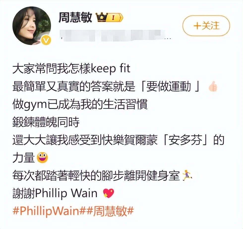 别看本年曾经56岁的周慧敏,通常里不过终年依旧着顺序的运动风俗,已经还发文说道:行家都问我是若何健身的?
